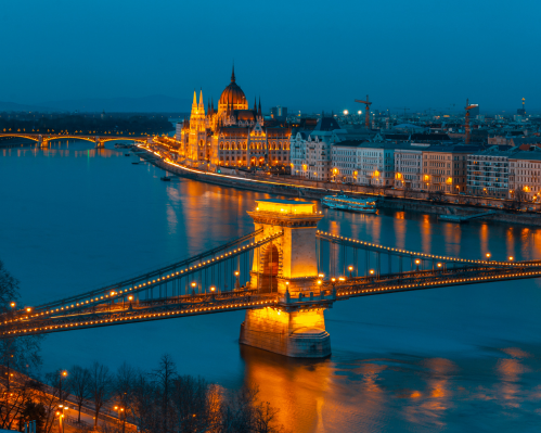 We will sail under the city’s most spectacular bridges—Chain Bridge, Elizabeth Bridge, and Liberty Bridge—and admire views of both Buda and Pest. The Parliament, Gellért Hotel, Buda Castle, Fisherman’s Bastion, and Matthias Church are among the landmarks beautifully illuminated at night.